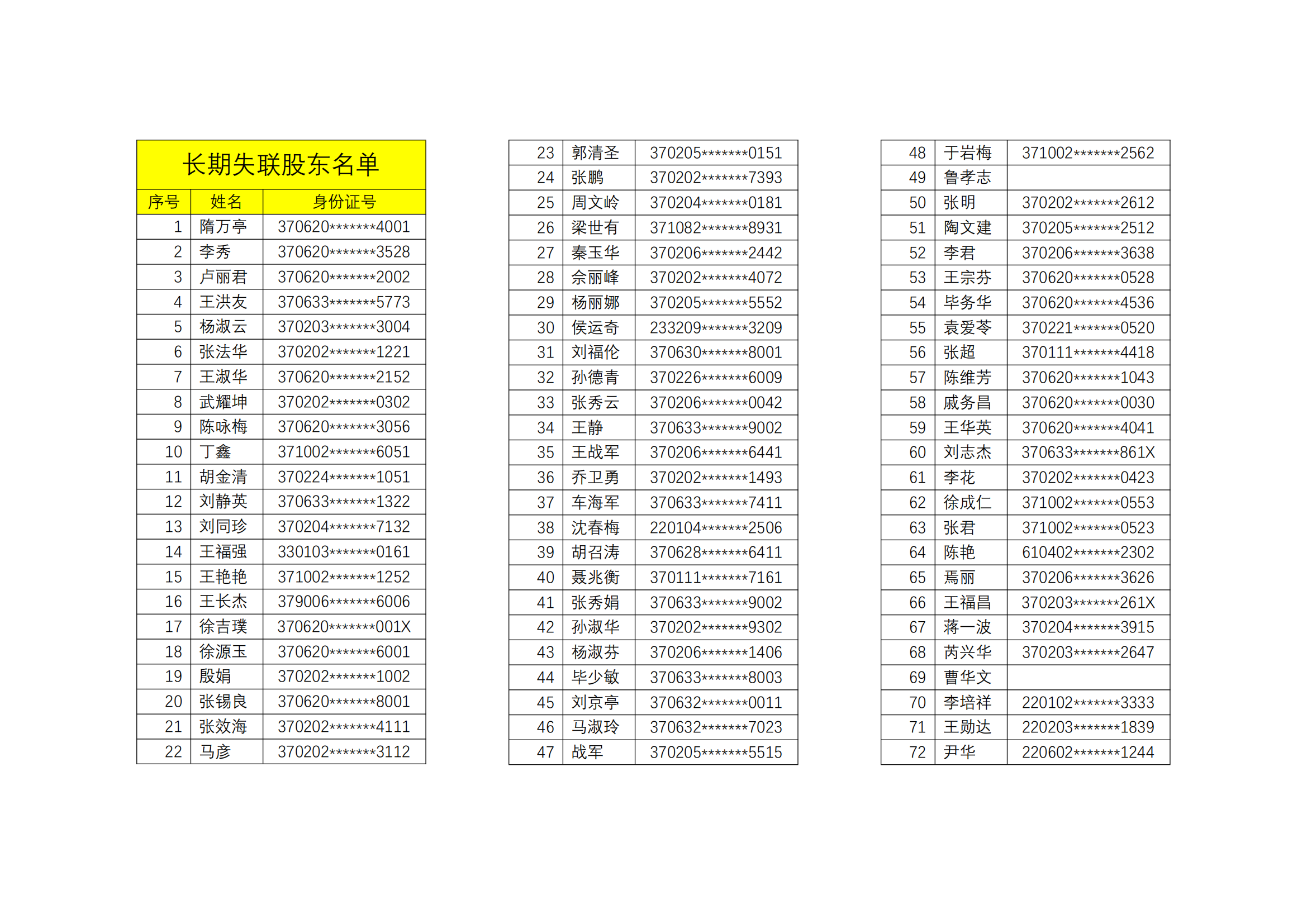 現公司對(duì)長(cháng)期未與公司聯系的股東進(jìn)行公告通知。股東應自公告之日起(qǐ)30日内聯系公司,辦理股權認領事(shì)宜。請股東盡快與本公司聯系。如有知情人士,請見此公告後(hòu)協助廣而告之。