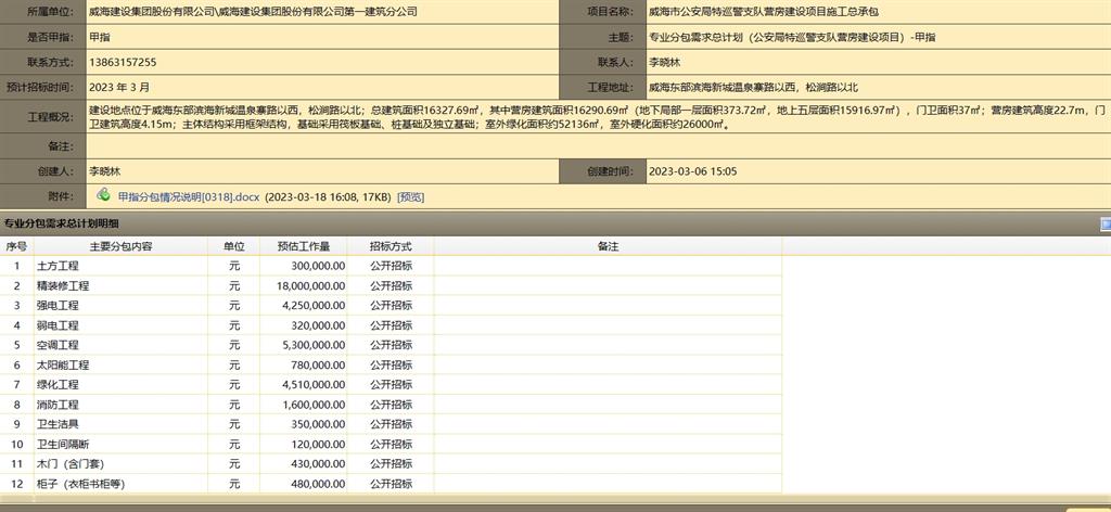 威海誠信建設項目管理有限公司第一建築分公司威海市公安局特巡警支隊營房建設項目施工總承包